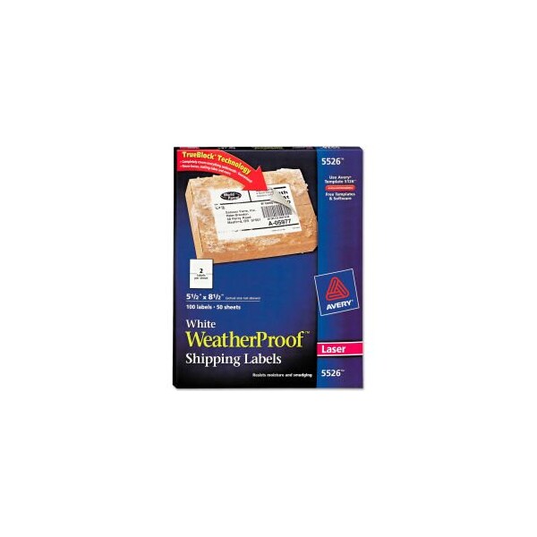 Don't let a little rain or snow worry you when you need to send a package. Waterproof labels stand up to the toughest environmental conditions and extreme temperatures, while resisting scuffs, tears and smudges, so they remain easy to read. Ultrahold Adhesive sticks to more tough surfaces: metal, plastic, glass and more, ensuring your label doesn't fall off your package. They also resist. TrueBlock Technology completely covers everything underneath your label, so you can reuse boxes, mailing tubes and more. With free printable templates and designs from Avery Design & Print, you can create custom labels with sharp text and graphics in minutes. Waterproof and UV-resistant. 8.5in x 11in sheets for laser printers. Shipping Labels. Shape: Rectangular; Label Size - text: 5.5 x 8.5; Label Colors: White; Color Family: White.