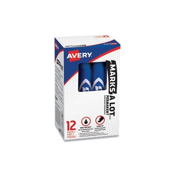 Won't dry out leave cap off up to hour! Bold marking, permanent ink provides high visibility. Marks on virtually any surface, including cardboard, metal, and plastic. Quick drying; water and rub resistant. Durable chisel tip marks in a variety of widths. Low odor. ACMI certified to meet Federal standards of nontoxicity; safe for office, school, or home. Conforms to ASTM D4236. Marker Ink Type: Permanent; Marker Tip Type: Chisel; Marker Tip Size text: Broad; Marker Tip Size numeric: 4.8 mm.