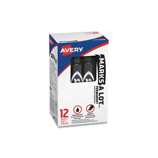 Won't dry out leave cap off up to hour! Bold marking, permanent ink provides high visibility. Marks on virtually any surface, including cardboard, metal, and plastic. Quick drying; water and rub resistant. Durable chisel tip marks in a variety of widths. Low odor. ACMI certified to meet Federal standards of nontoxicity; safe for office, school, or home. Conforms to ASTM D4236. Marker Ink Type: Permanent; Marker Tip Type: Chisel; Marker Tip Size text: Broad; Marker Tip Size numeric: 4.8 mm.