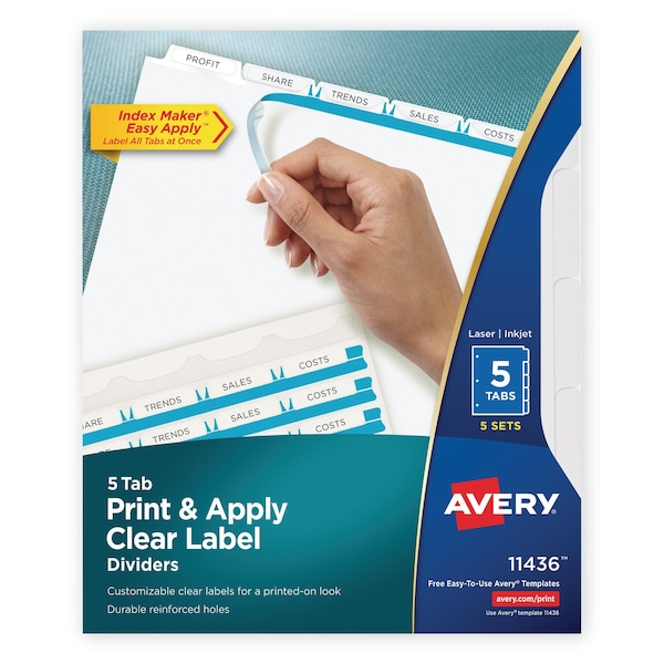 Print&Apply Clear-Label Dividers w/White Tabs, Package Quantity 5