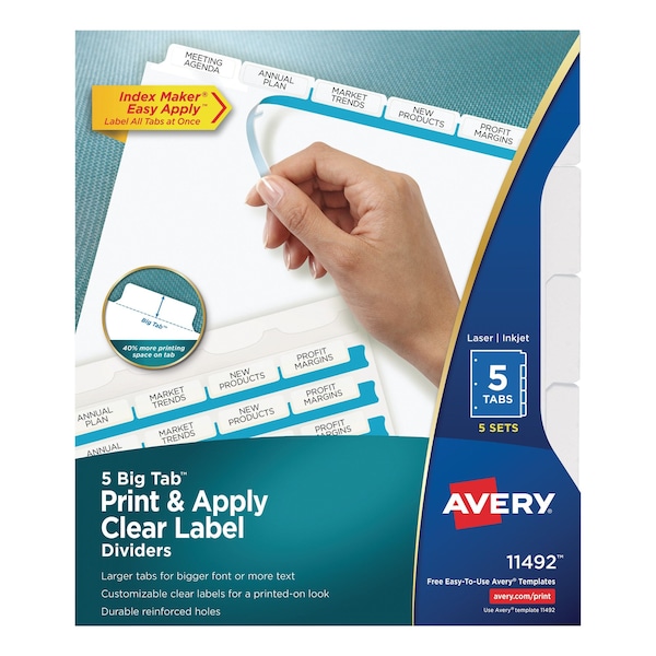 Print&Apply Clear-Label Dividers w/White Tabs, Package Quantity 5