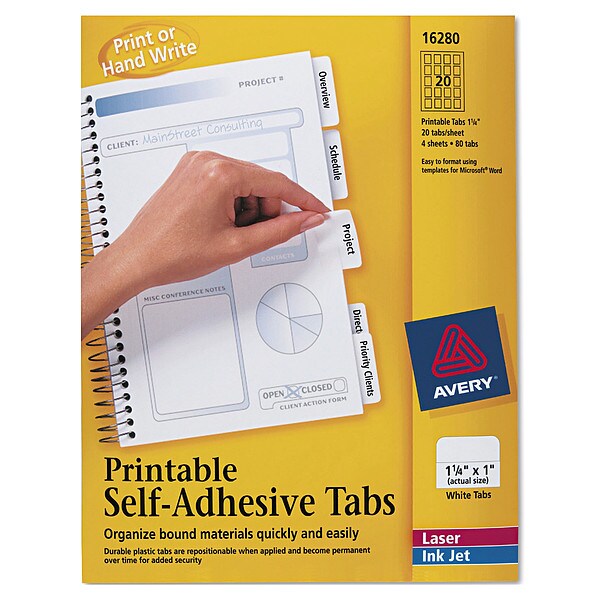 Tab Message Blank, Divider Color White, Number of Tabs 24, Tab Cuts Visible 24, Material Plastic, For Use With Laser/InkJet Printers, Index Tabs, Package Quantity 96