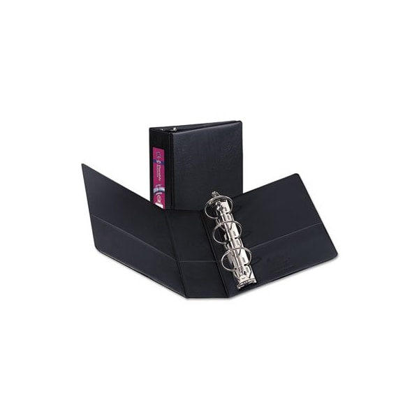 Quick reference guide: Use this Mini Durable Binder to organize paperwork like a pro. The round rings holds up to 175 sheets of paper and are perfect for address book inserts and contact sheets. You can also organize and secure loose and unpunched pages with two pockets on the front and back inside covers. An ID label holder on the spine makes content easy to identify at a glance. Binder Type: Ring; Binder Style: Non-View; Binder Size Capacity: 2in; Binder Sheet Capacity: 375.