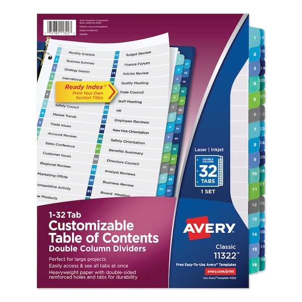 Customizable Table-of-Contents Double-Column Dividers, Package Quantity 32