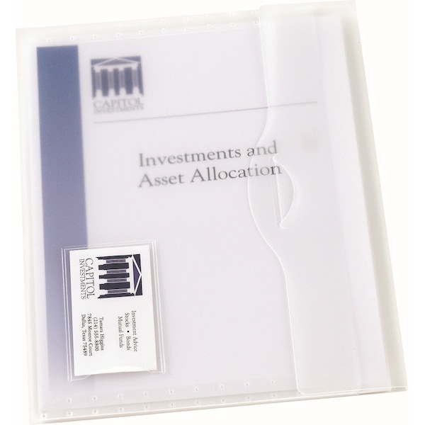 Document Wallet features a business card pocket on front. Flap easily opens and closes securely with die-cut closure. Wallet is made of a translucent, matte finish poly material that is durable and stylish. Holds up to 50 pages.