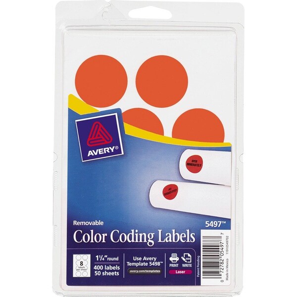 Mark your important objects or dates with neon clarity. Round color-coding labels affix firmly to files, documents, inventory, calendars and more to help you stay organized, and they are removable so you can peel them away when you don't need them anymore. The bright color draws the eye so you can easily find similar items or keep track of important appointments. Customize the labels either by hand or with free templates available online and your laser printer. They are good for routing, organizing, highlighting, price marking and scheduling. Labels come on a 4" x 6" sheet size. They are not recommended for use with color laser printers.