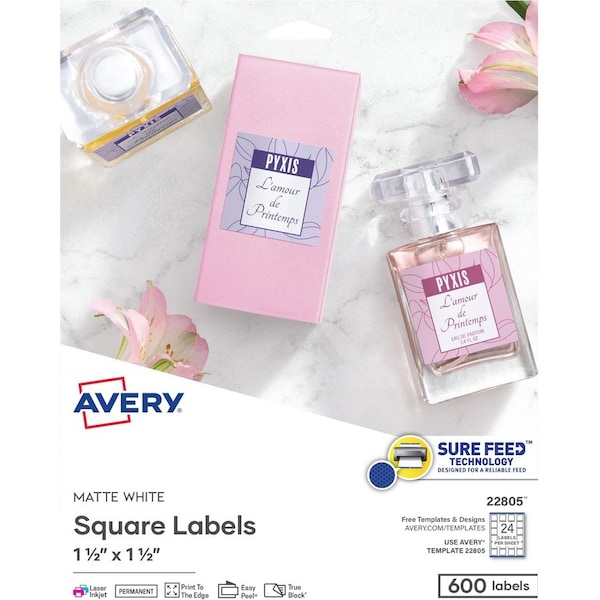 Easy Peel White Square Labels are ideal for branding, promotional items, packaging, mailings, brochures and other business products. These small square labels can be customized to promote your company or product, or connect customers to your website and other digital media with a 2D bar code or QR Code. Print-to-the-edge feature lets you add a full-color background to your brand logo, product name, address or message. Patented Easy Peel label sheets with Pop-up Edge ensure a quick and easy application. Simply bend the label sheet back, peel and return the sheet to a flat position. With room to print a bar code and one line of text, you can drive customers to your website, social networking feeds, video content, a map of your location or other information. Patent-pending TrueBlock Technology blocks out words or other dark colors underneath the label to provide more accurate bar-code scans, while completely covering the surface below. Labels are compatible with laser and inkjet printers.
