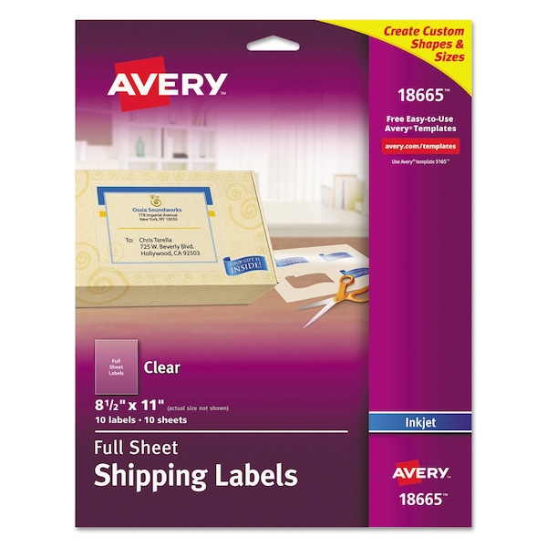 Matte Clear Shipping Labels, Inkjet Printers, 8.5 x 11, Clear, PK10