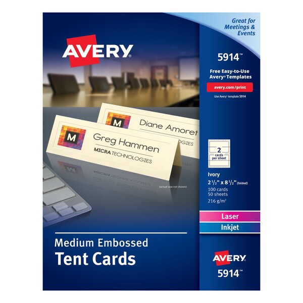 Medium Tent Cards,Embossed Ivory,PK100, Package Quantity 100