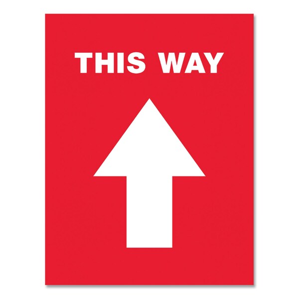 Social Distancing Floor Decals, 8.5 x 11, This Way, Red Face, White Graphics, 5PK