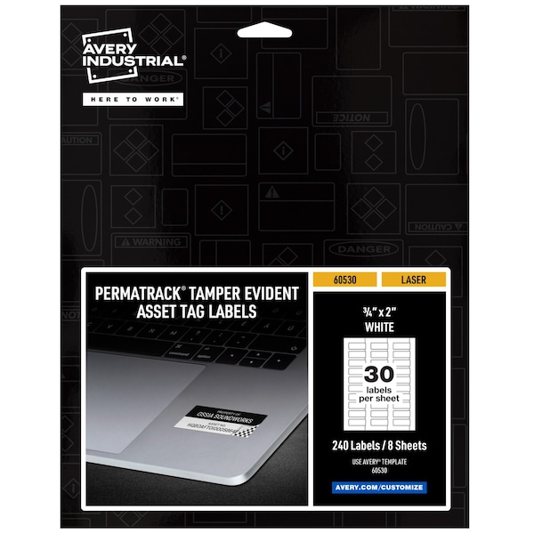 Tamper-Evident Asset Tag Labels, L, PK240