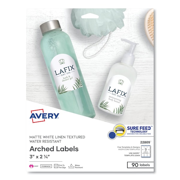 Textured Arched Print-to-the-Edge Labels, Laser Printers, 3 x 2.25, White, 90PK
