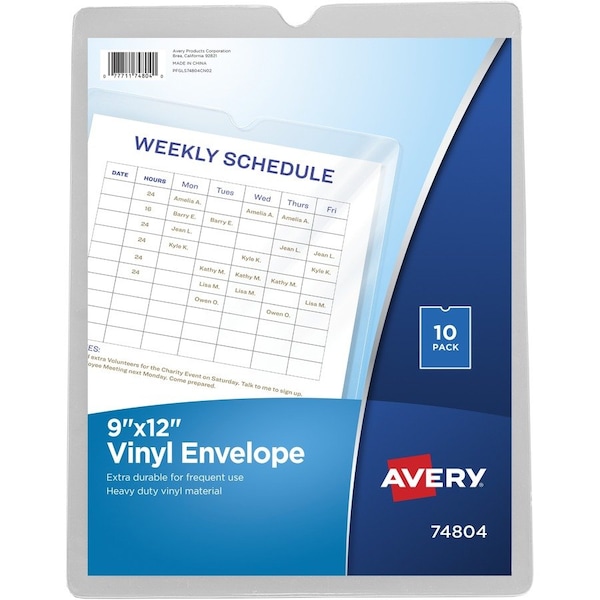 Handy envelopes protect loose items, job tickets and paper. Vinyl envelopes are made of crystal clear, heavyweight vinyl sealed on three sides and thumb-notched at the top.