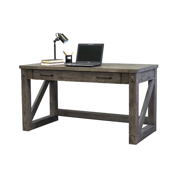 Writing Desk, 58" W, 28" L, 31" H, Ash solids and veneers Top, Weathered white