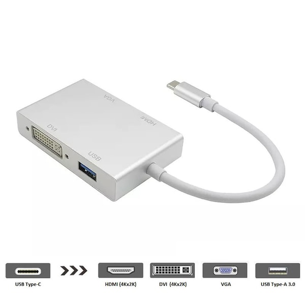 Axiom 4-In-1 Usb-C To Hdmi, Vga, Dvi And Usb Video Adapter