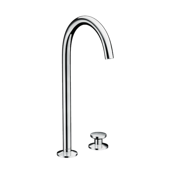 AXOR One is characterized by a design language of slender silhouettes, flat surfaces, soft corners and balanced proportions. At the sink, the faucet with all-in-one control features a gentle taper to the curved spout, a subtle detail that signals exceptional quality of design and manufacture. Utilizing Select technology, the mechanical controller provides a new mode of interaction: Simply press down to start or stop the water; swivel clockwise to increase the temperature. Easy, intuitive and precise, the new interaction mode also conserves water. The AXOR ONE collection comes in 5 finishes: chrome, brushed gold optic, brushed black chrome, matte black, and brushed nickel.