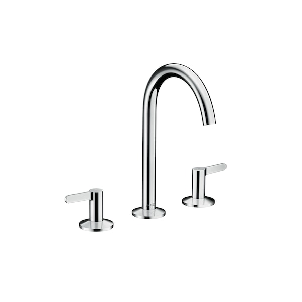 AXOR One is characterized by a design language of slender silhouettes, flat surfaces, soft corners and balanced proportions. At the sink, the faucet with all-in-one control features a gentle taper to the curved spout, a subtle detail that signals exceptional quality of design and manufacture. Utilizing Select technology, the mechanical controller provides a new mode of interaction: Simply press down to start or stop the water; swivel clockwise to increase the temperature. Easy, intuitive and precise, the new interaction mode also conserves water. The AXOR ONE collection comes in 5 finishes: chrome, brushed gold optic, brushed black chrome, matte black, and brushed nickel.