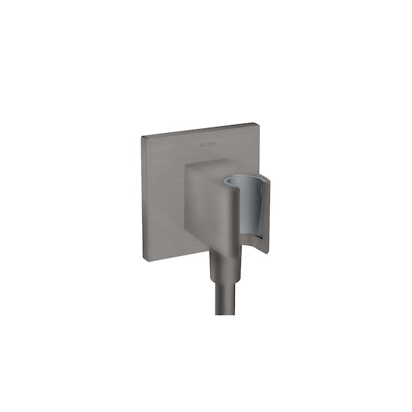 ShowerSolutions Wall Outlet with Handshower Holder, Square in Brushed Black Chrome