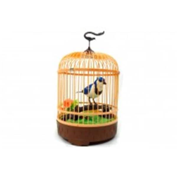 Az Import & Trading BC507D Singing & Chirping Bird in Cage - Realistic Sounds & Movements Blue - 10.5 x 7 in.