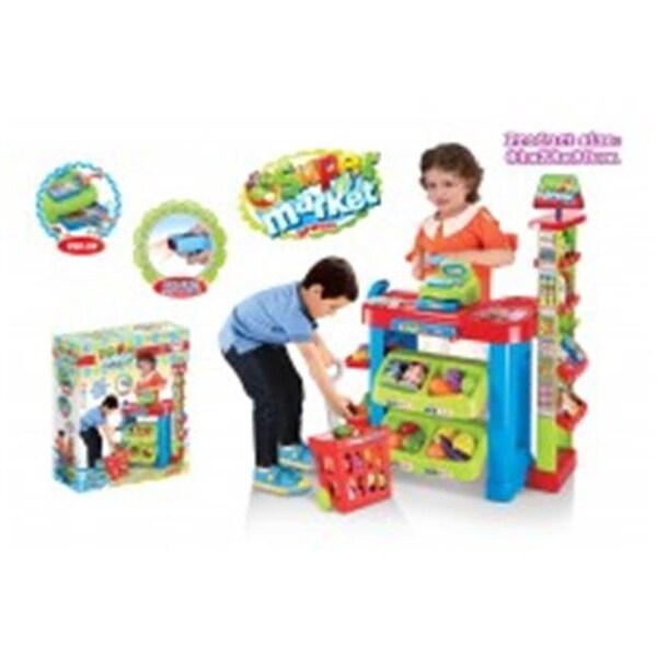 Features- This toy market play set comes with a cash register, scanner, shopping cart, food, and money Includes various fruits, vegetables, and other groceries.