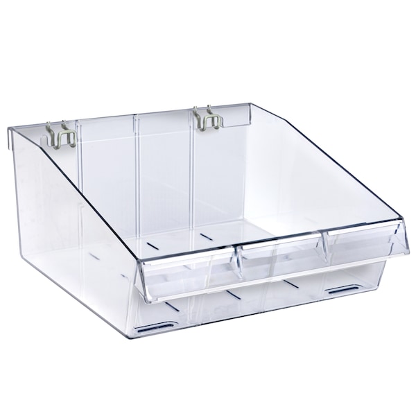 Azar's multipurpose divider bins are designed for displaying multiple products of varying sizes at one time. Choose to add dividers to create more compartments. Use these bins on pegboard, slatwall, or counter top. Dividers are sold separately (Item# 30DIV).