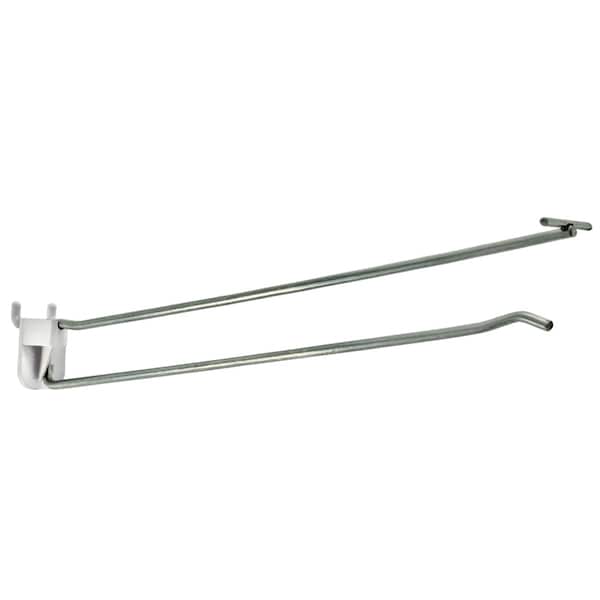 Galvanized metal hooks with Quick Back Plastic Backplate for pegboard and slatwall. Two-piece design provides fast, straight entry under shelves or in loaded displays. Compatible with Flip Scan label holders. Label holders sold separately.