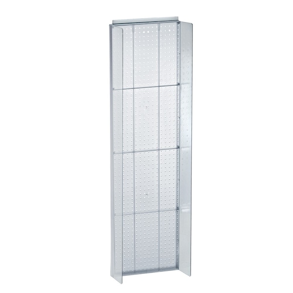 This plastic pegboard powerwing unit with clear plastic side wings is an attractive display to enhance the look of any product. Place this unit at the end of a store aisle or on a wall of pegboard or slatwall. The plastic side wings measure 4.5"W. Sign holder and hooks sold separately.