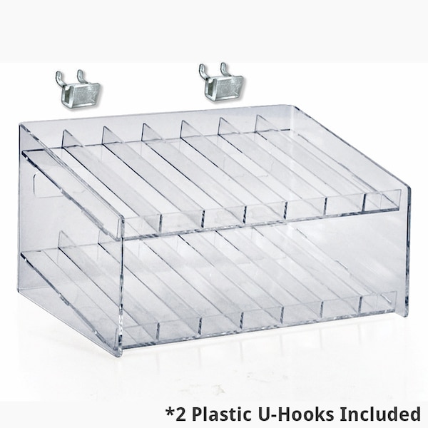 Use these attractive displays on pegboard, slatwall, or countertop to present an assortment of products in a neat and organized arrangement. Plastic U-Hooks included for use on pegboard and slatwall.