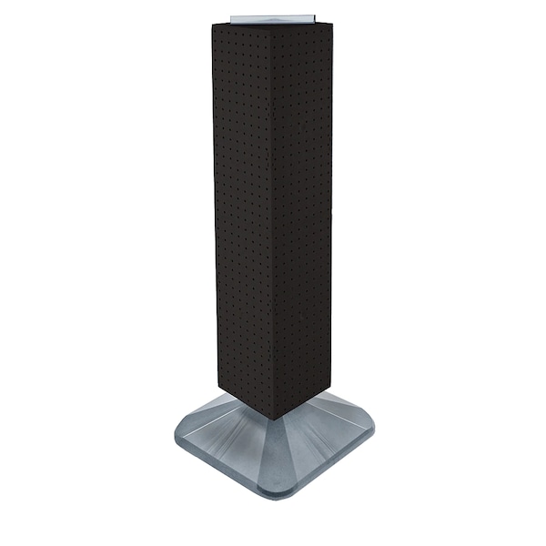 This 4-sided pegboard interlocking Floor Display measures 8" W x 8" D x 40"H and revolves on a silver plastic weighted base. Easy to assemble (no tools required). Sign holder and hooks sold separately.
