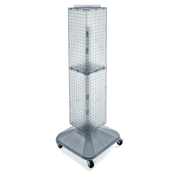 4-Sided Pegboard Spinner Rack w/ Wheels. Clear Frost 8"W x 48"H