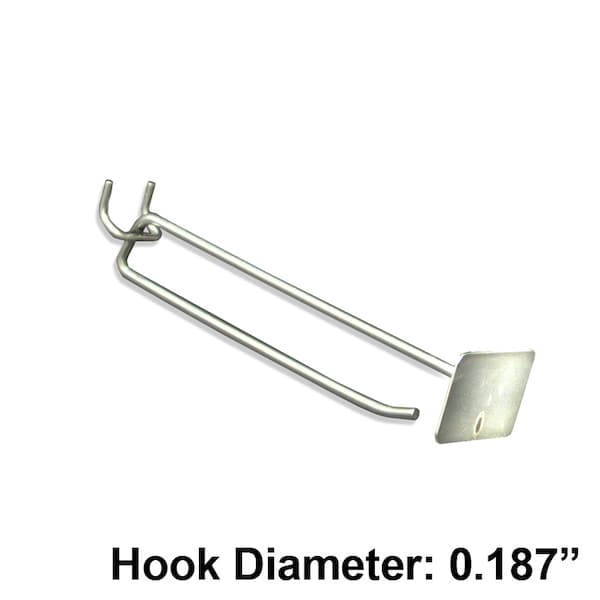 Metal scan hooks with galvanized metal finish for pegboard or slatwall.