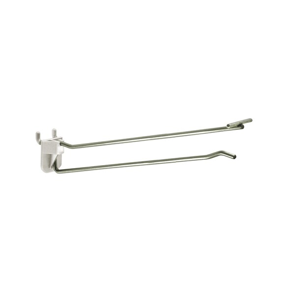 Galvanized metal hooks with Quick Back Plastic Backplate for pegboard and slatwall. Two-piece design provides fast, straight entry under shelves or in loaded displays. Compatible with Flip Scan label holders. Label holders sold separately.