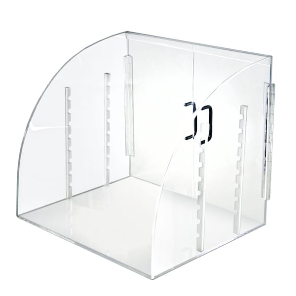 Azar’s Acrylic Curved Food Display Case with Front/Back Swing Open Doors is widely used in bakeries, cafes, restaurants, delis hotels, airports and any food service environment. The clear stylish and curved outward design complements any decor and allows customers to easily view the food items inside. Employees can easily monitor the inventory of food and replenish as needed. Each storage bin has black metal handles on the back door for food replenishment. Display muffins, cakes, cookies, bread and donuts all at once while saving counter space with these compact storage bins. This food display case is made of durable acrylic. Includes two removable trays that are adjustable at varying heights. Extra trays available for purchase, see item# 400430. Place this bakery bin by the cash wrap or any counter top to boost your sales!