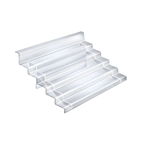 Azar's Five-Tier Clear Counter Step Display can be used two ways. One side allows you to display larger items with a 2.25” deep step, or flip it over and you can display smaller items with step size 1” deep. With this display you can organize an assortment of products in a neat and attractive arrangement. This display provides easy access to products while maximizing counter space. The clear acrylic makes any product pop! Five Steps on each size. The steps are ideal to display items that stand upright. The overall measurement of the step display is 14.75”W x 13.75”D x 8”H. The best feature about this display is it can be used in two different orientations.