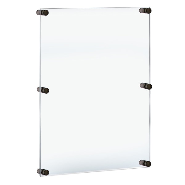 These classy one-sided Wall Mount Floating Frames are ideal for displaying artwork, photos, posters or branding in your office, home or at an event. These clear double panel floating frames with gold caps are strong, stable, as well as easy to clean and maintain. The innovative design holds your artwork or picture in place without it moving or slipping at all. Add elegance to your professional environment with Azar's clear acrylic gallery frames with black satin aluminum caps and standoffs. Frames can be used vertically or horizontally. Each floating sign holder frame set includes 2 acrylic panels that are 3/16" thick, 4 black standoff caps and hanging hardware. Note: Large format sizes: 24" x 36" and 30" x 40" include 6 standoffs and caps. Easy to change the sign or photo, simply unscrew the front black cap and switch out the graphic. There is no need to remove the frame from the wall once it is affixed. The edges are flame polished giving these floating picture holders a high end finish with a touch of fancy. Hang these beautiful acrylic frames in boutiques, museums, trade shows, hotel lobbies, restaurants, retail stores, schools, at work or at home. Sold in Multiples of 1.
