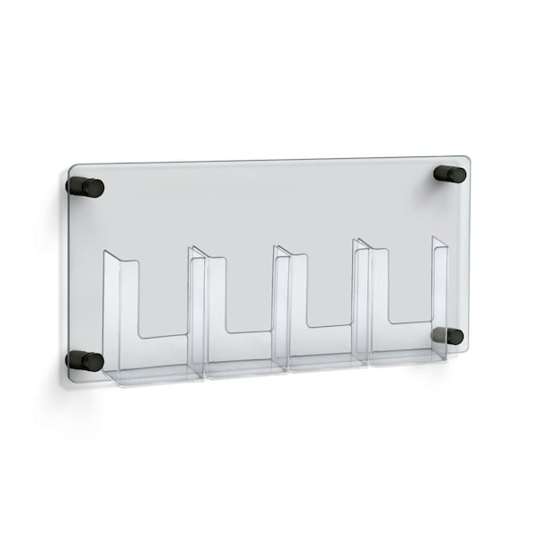 Four-Pocket Trifold Wall Mount Brochure Holder with Black Stand Off Caps