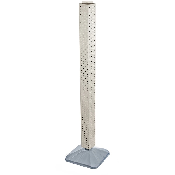 This 4-sided pegboard interlocking floor unit measures 4" W x 4" D x 60" H and revolves on a weighted silver plastic base. Easy to assemble (no tools required). Sign holder and hooks sold separately.