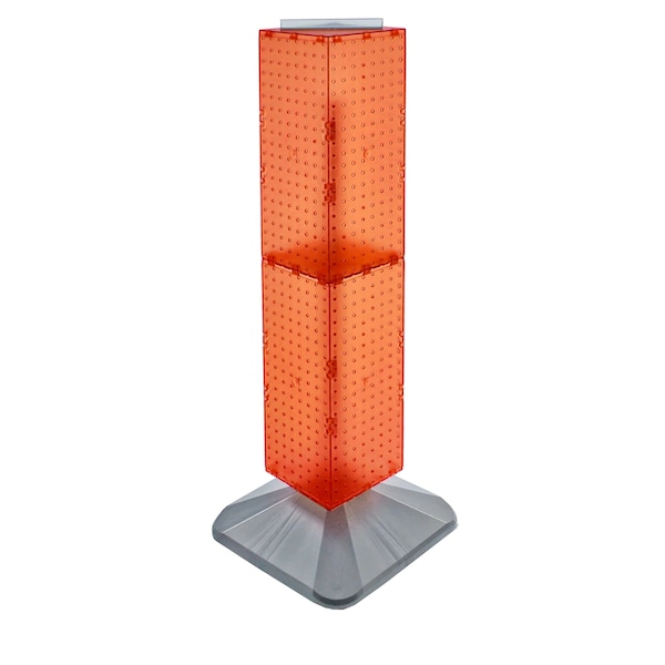 This 4-sided pegboard interlocking Floor Display measures 8" W x 8" D x 40"H and revolves on a silver plastic weighted base. Easy to assemble (no tools required). Sign holder and hooks sold separately.