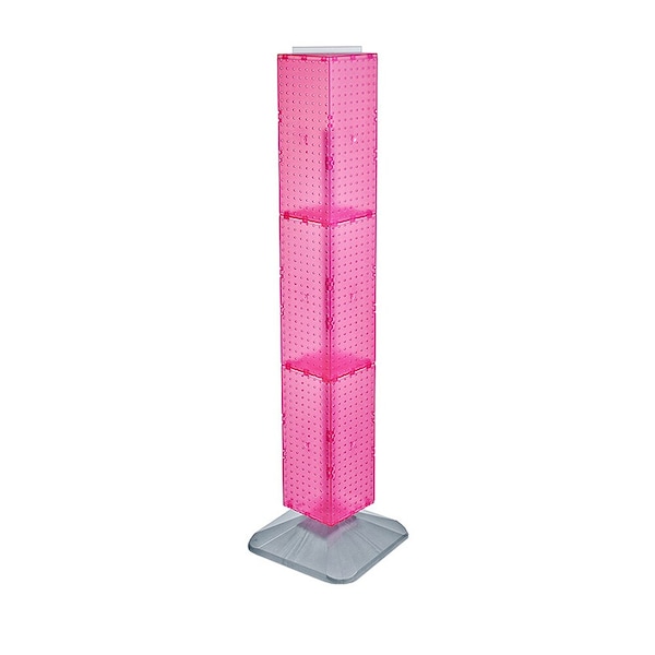 This 4-sided pegboard interlocking Floor Display measures 8"W x 8"D x 60"H and revolves on a silver plastic weighted base. Easy to assemble (no tools required). Sign holder and hooks sold separately.