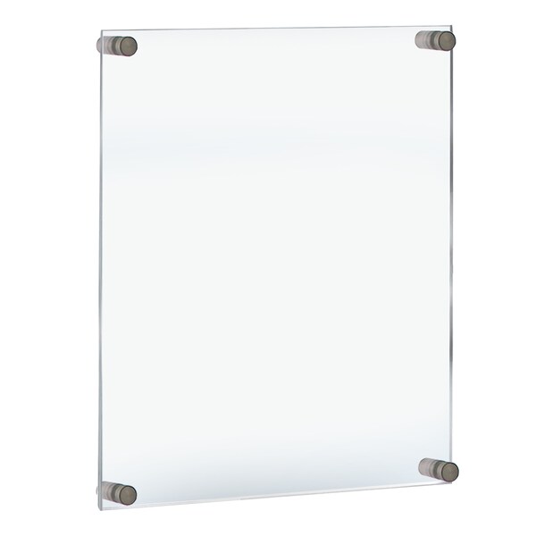 Add elegance to your professional environment with Azar's clear acrylic wall mount frames with silver satin aluminum caps and standoffs. Frames can be used vertically or horizontally.