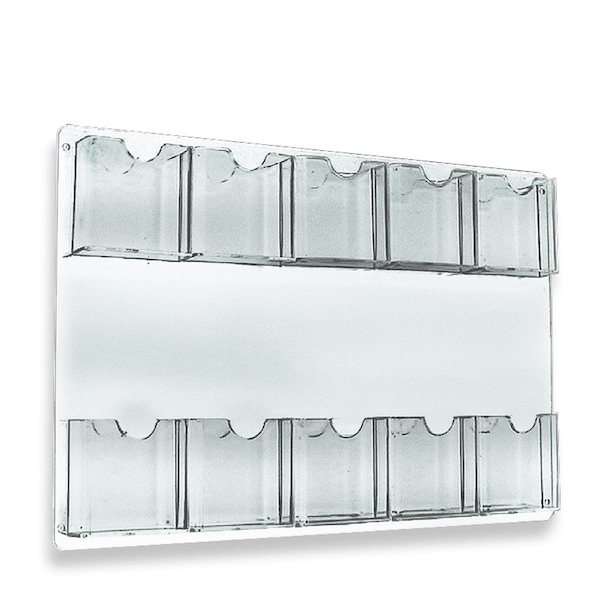 Ten Pocket Tri-Fold Wall Rack, Clear, Vertical, 24"W x 16"H, 2PK