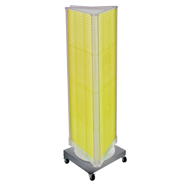 Three-Sided Revolving Pegboard Tower Floor Display on Wheeled Metal Base. Spinner Rack Stand.
