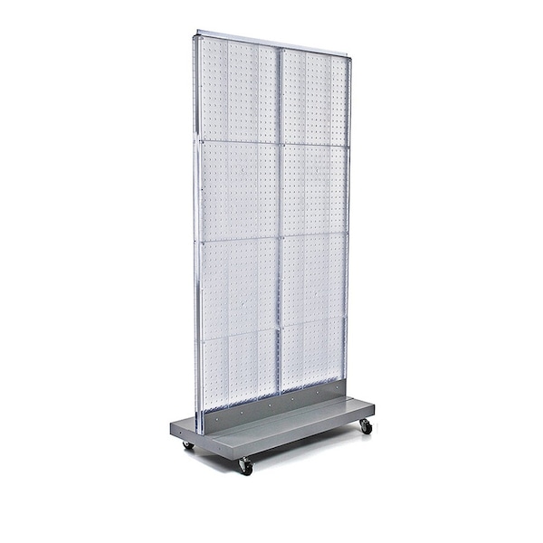 Two-Sided Double Pegboard Floor Display on Wheeled Base