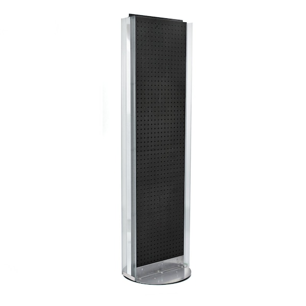 Two-Sided Pegboard Floor Display w/ C-Channel Sides on Revolving Base. Spinner Rack Stand.