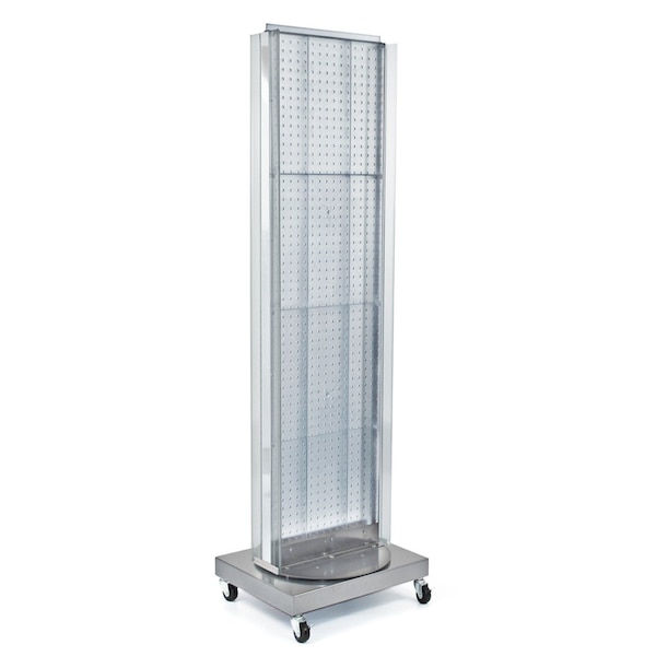 Two-Sided Pegboard Floor Display w/ Two C-Channel Sides on a Revolving Wheeled Base.