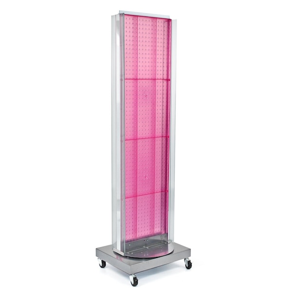 Two-Sided Pegboard Floor Display w/ Two C-Channel Sides on a Revolving Wheeled Base.