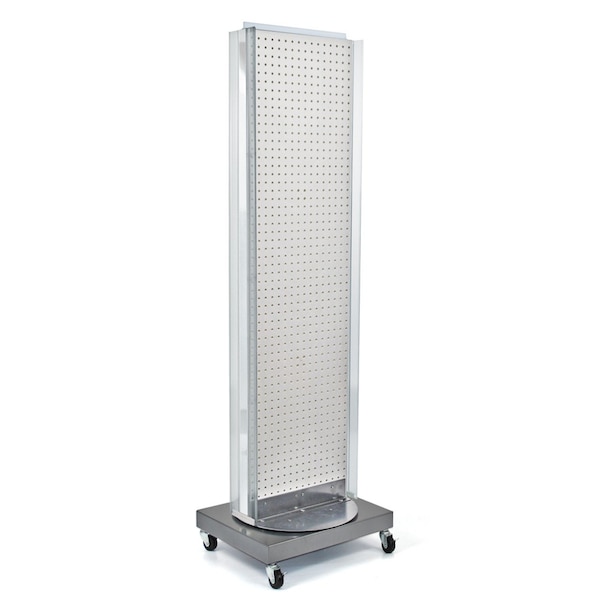 Two-Sided Pegboard Floor Display w/ Two C-Channel Sides on a Revolving Wheeled Base.