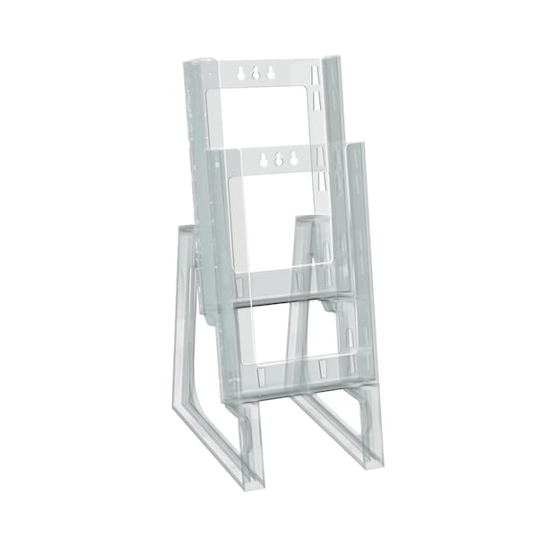 Two tier trifold brochure holder for use on counter top for printed material measuring 4.125"W x 9"H.