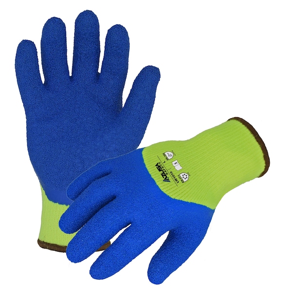 Coated Winter Work Gloves, Acrylic Lining, Hi-Vis Lime/Blue, Large