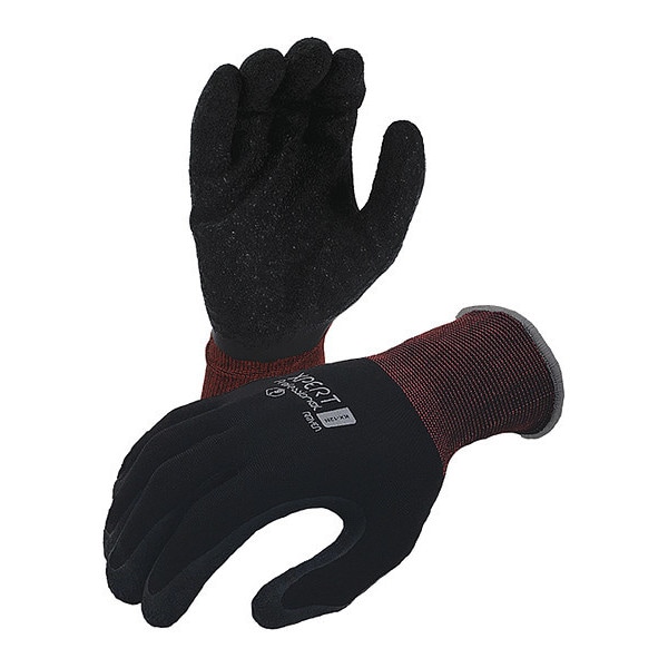 Coated Work Gloves, Latex, Crinkle, Palm, Black/Grey/Red, L 1 PR